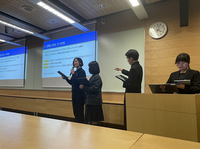 | 15:40-16:00 | 文明と天災〜災害・防災の地域事例等研究〜 永森理仁¹・小澤優²・釆睪みのり³・清澤春那¹(1:暁星国際高等学校1年,2:上智大学2年,3:上智大学4年) |